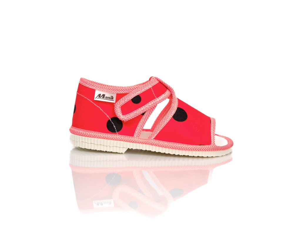 Dlhodobo najpredávanejšie detské sandálkové papučky s otvorenou špicou, so zapínaním na suchý zips. Jednoduché zapínanie ideálne aj pre našich najmenších. Papučky sú vyrobené z ľahkých a pružných materiálov, a v klenbovej časti sú vystužené ideálne tuhou penou pre podporu zdravého vývoja detskej nožičky. Strih papučiek je prispôsobený detskému chodidlu aby nespôsobovali deformáciu pri vývoji chodidla. Sú určené pre používanie v interiéri.