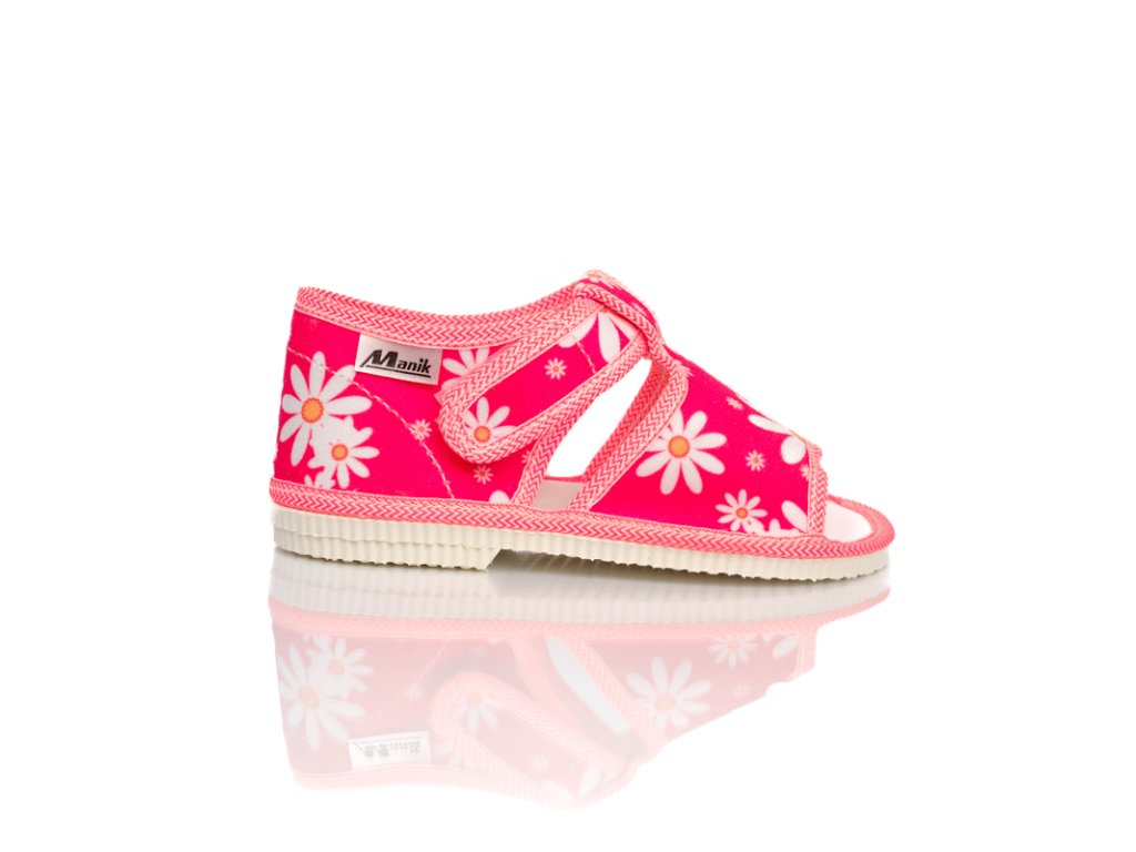 Dlhodobo najpredávanejšie detské sandálkové papučky s otvorenou špicou, so zapínaním na suchý zips. Jednoduché zapínanie ideálne aj pre našich najmenších. Papučky sú vyrobené z ľahkých a pružných materiálov, a v klenbovej časti sú vystužené ideálne tuhou penou pre podporu zdravého vývoja detskej nožičky. Strih papučiek je prispôsobený detskému chodidlu aby nespôsobovali deformáciu pri vývoji chodidla. Sú určené pre používanie v interiéri.