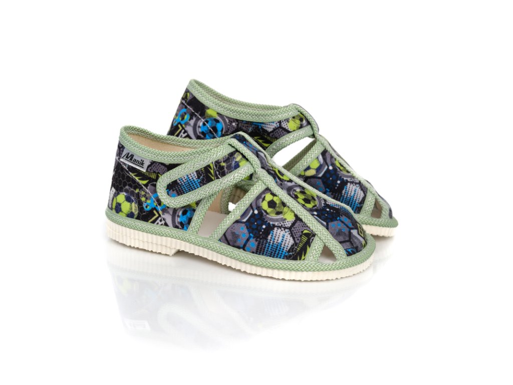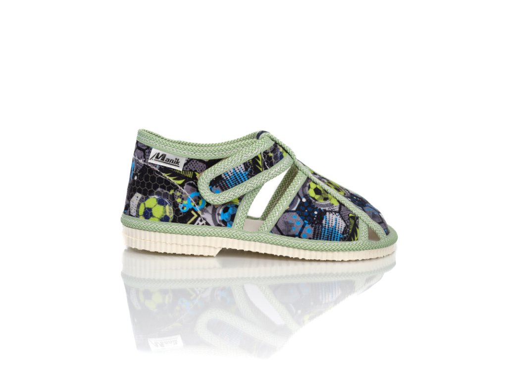 Detské sandálkové papučky s uzavretou špicou, so zapínaním na suchý zips. Jednoduché zapínanie ideálne aj pre našich najmenších. Papučky sú vyrobené z ľahkých a pružných materiálov, a v klenbovej časti sú vystužené ideálne tuhou penou pre podporu zdravého vývoja detskej nožičky. Strih papučiek je prispôsobený detskému chodidlu aby nespôsobovali deformáciu pri vývoji chodidla. Sú určené pre používanie v interiéri.